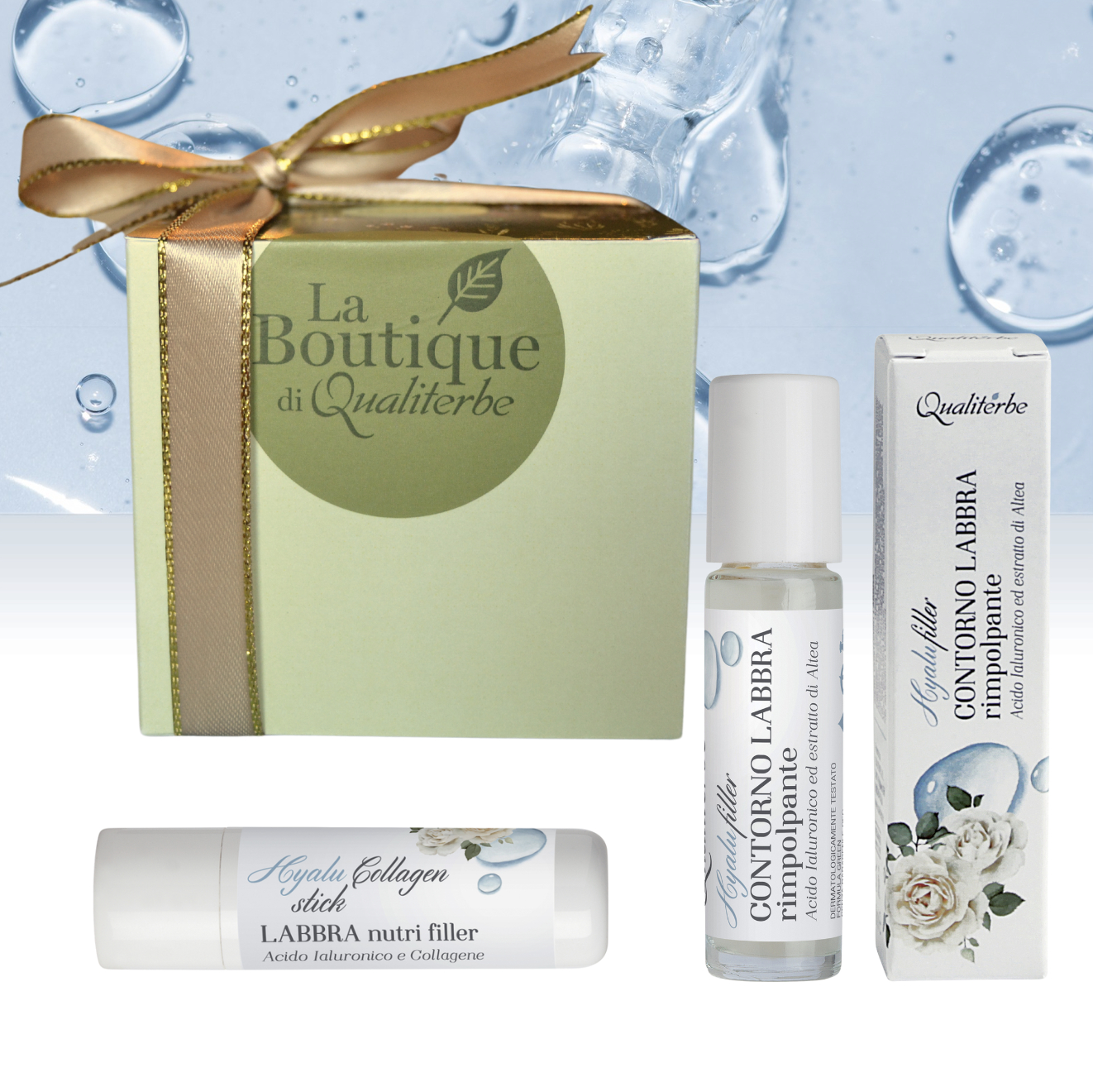Ideale per chi desidera labbra piene e idratate, pronte a risplendere con una bellezza naturale ogni giorno. Dona alle tue labbra e al contorno labbra una cura completa e intensiva con il Cofanetto "Trattamento Intenso Labbra" all'Acido Ialuronico. Questo duo esclusivo è studiato per proteggere, rimpolpare e valorizzare la naturale bellezza delle labbra. Hyalu Collagen Stick Labbra Protettivo Rimpolpante: Un balsamo ricco e idratante che protegge dalle aggressioni esterne, rimpolpando e lasciando le labbra morbide e vellutate. Hyalu Filler Contorno Labbra Rimpolpante: Un trattamento mirato che leviga il contorno labbra, riducendo le piccole rughe e definendo il sorriso per un aspetto giovane e fresco.