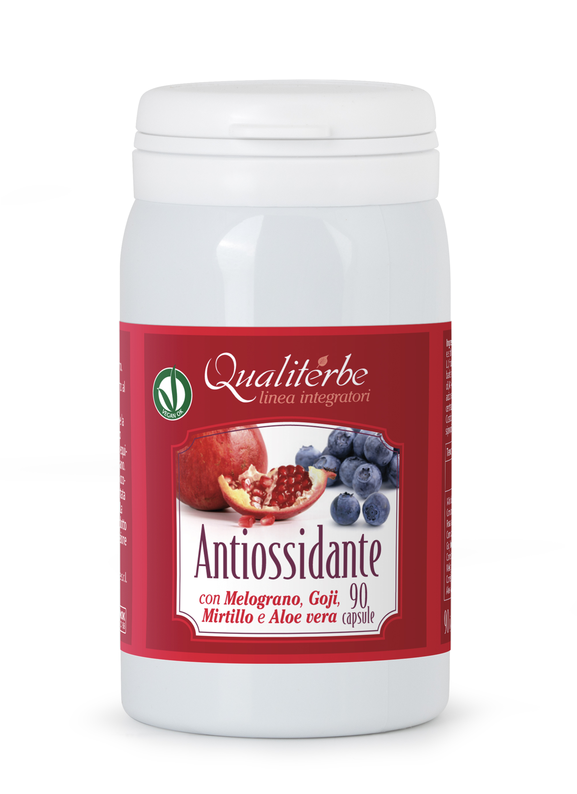 Integratore alimentare a base di estratti di Melograno, Aloe, Mirtillo, bacche Goji e Rosa Canina, piante in grado di promuovere un'efficace attività antiossidante, prevenendo la formazione e l'azione dannosa dei radicali liberi e proteggendo il nostro organismo da sostanze inquinanti che possono portare a reazioni dannose a livello cellulare. La presenza del Mirtillo Nero, in virtù delle sue note proprietà, è inoltre responsabile degli effetti di protezione e miglioramento del microcircolo e del sistema venoso.
