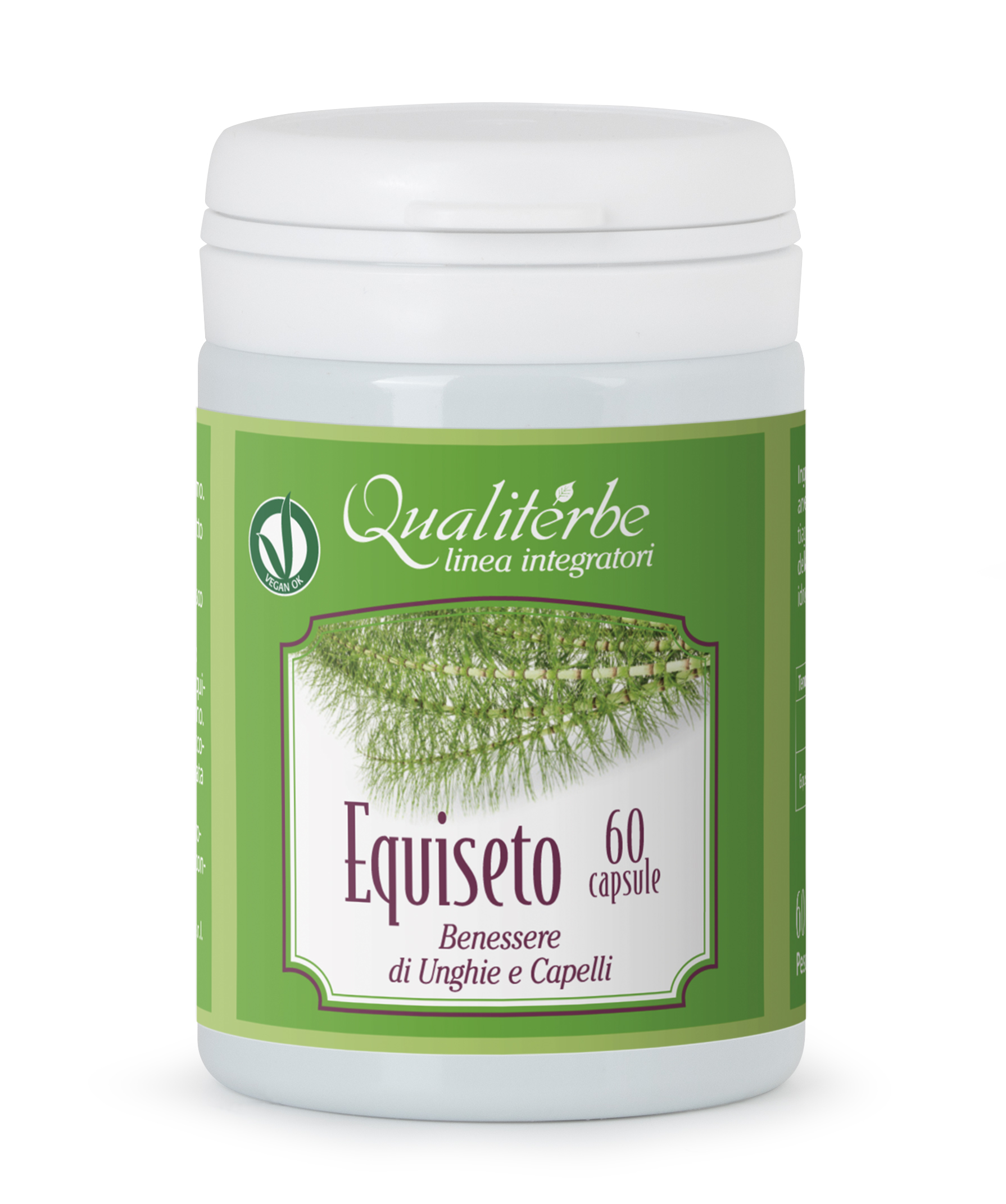 Integratore alimentare a base di Equiseto, utile per il mantenimento e miglioramento del benessere di unghie, capelli e trofismo connettivo. Consigliato inoltre come rimineralizzante, in caso di fratture e lesioni ossee, dovuta all'elevata quantità di sali di silicio e di potassio che naturalmente contiene. L'uso dell'Equiseto può essere utile anche per rallentare il processo di invecchiamento delle fibre elastiche, svolge azione protettiva delle mucose determinando un'azione favorente la cicatrizzazione (aumento elasticità cutanea, rallentamento invecchiamento cutaneo). La pianta presenta anche una blanda attività diuretica, di tipo esclusivamente idrico.