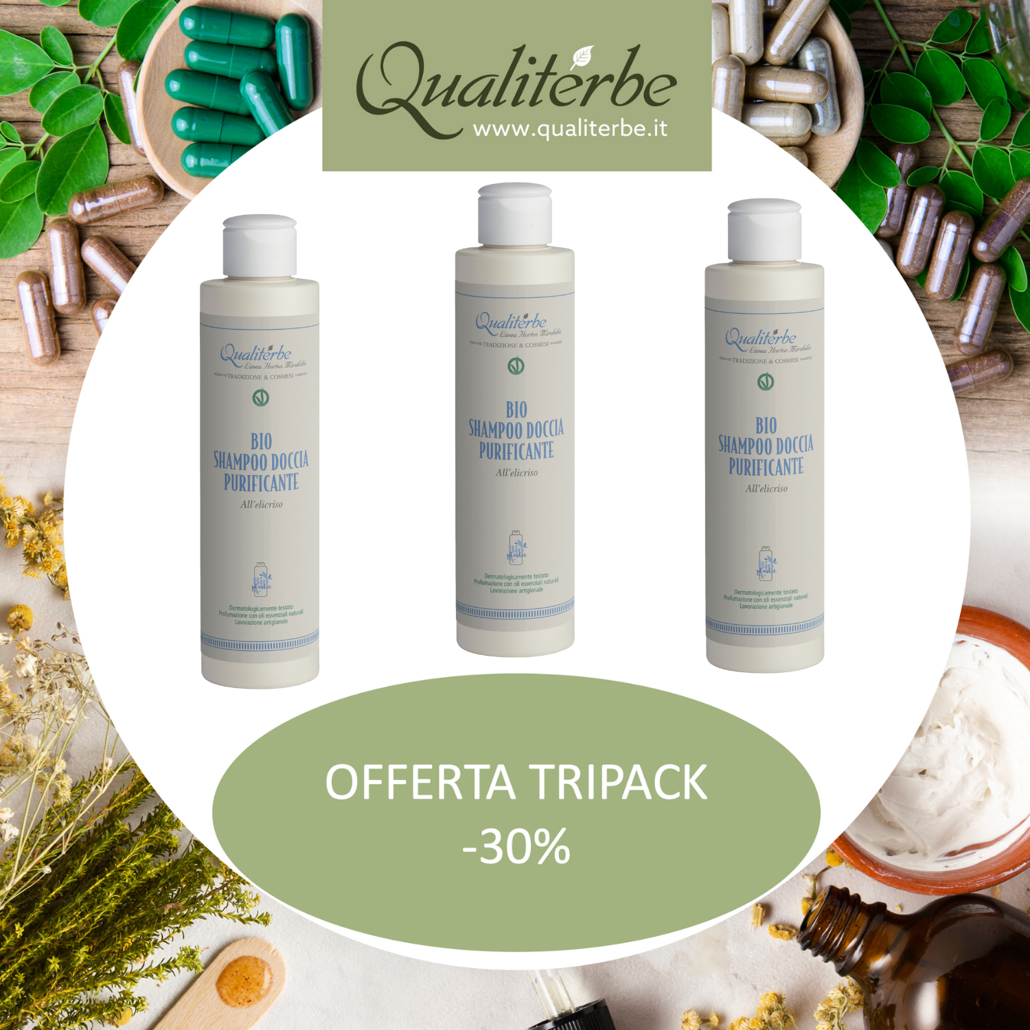 Shampoo biologico purificante e riequilibrante del cuoio capelluto ideale in caso di forfora, irritazione, prurito, desquamazione. La sinergia delle differenti forme estrattive di Elicriso presenti in questo detergente, si distinguono per l'azione lenitiva, antipruriginosa e sebo-equilibrante, ideale per capelli colorati e sensibilizzati, determinandone la spiccata azione antiforfora e contribuendo alla sua eliminazione e prevenzione. La miscela di tensioattivi naturali è stata realizzata a partire da prodotti di derivazione di origine vegetale per un risultato efficace e delicato, tale composto risulta quindi non aggressivo e adatto a tutti i tipi di pelle, anche in età pediatrica. Adatto a tutti i tipi di pelle.