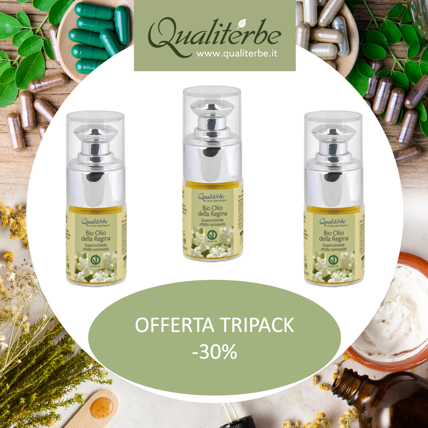 L'Olio della Regina è una esclusiva e ricercatissima miscela di oleoliti ad alto contenuto di principi attivi rigeneranti ed antiossidanti, in grado di contrastare in modo efficace i segni del tempo.