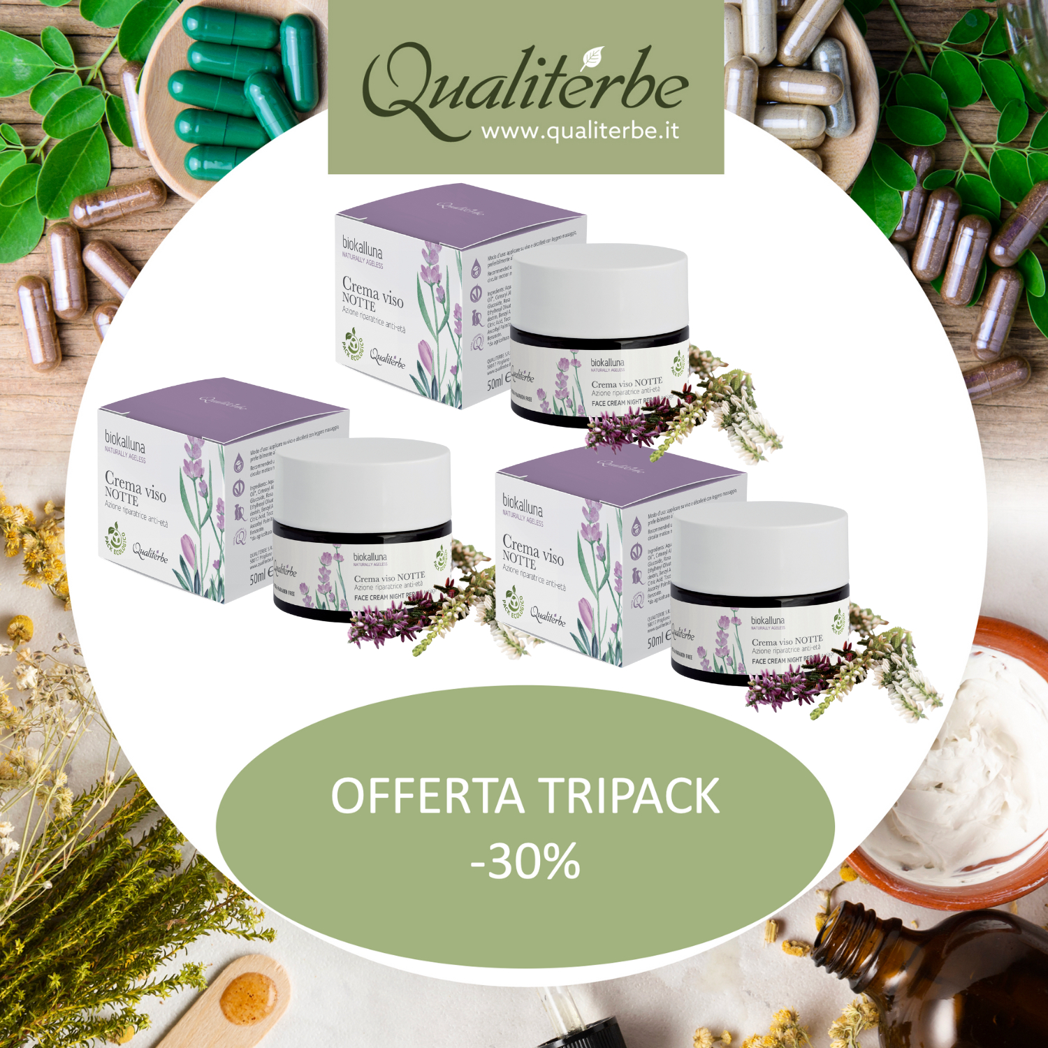 La somma degli ingredienti attivi, uniti alle singolari proprietà dell'estratto di Calluna, nel promuovere la formazione del biofilm protettivo cutaneo e la sintesi di collagene, rendono il prodotto particolarmente efficace nell'applicazione serale.