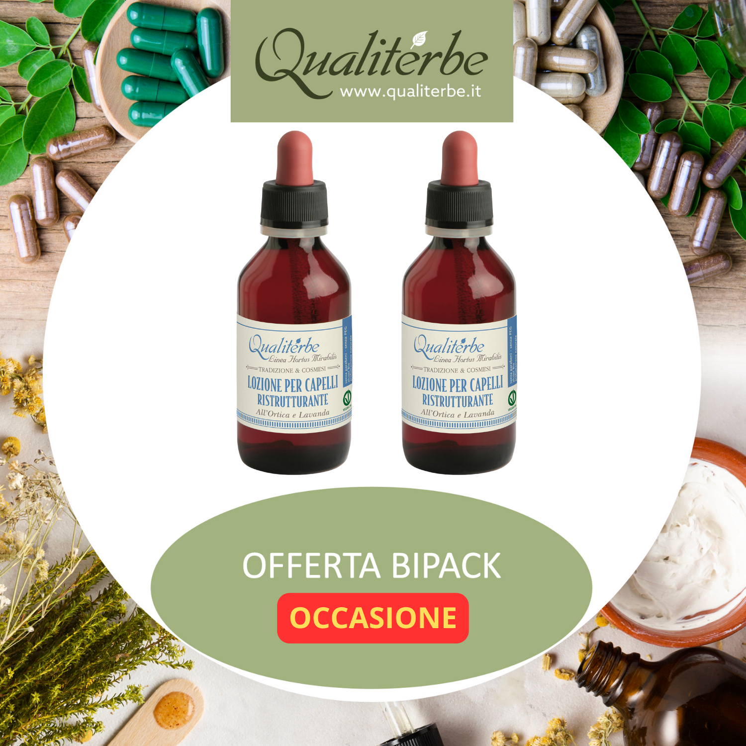 La sinergia degli estratti idroalcolici ottenuti delle foglie fresche di Ortica, Edera e dei fiori di Lavanda, è da sempre utilizzato per stimolare l’attività del bulbo pilifero, riducendo la caduta del capello e svolgendo un’azione ristrutturante e normalizzante, grazie alla ricchezza in vitamine, sali minerali, clorofilla e sostanze azotate presenti.