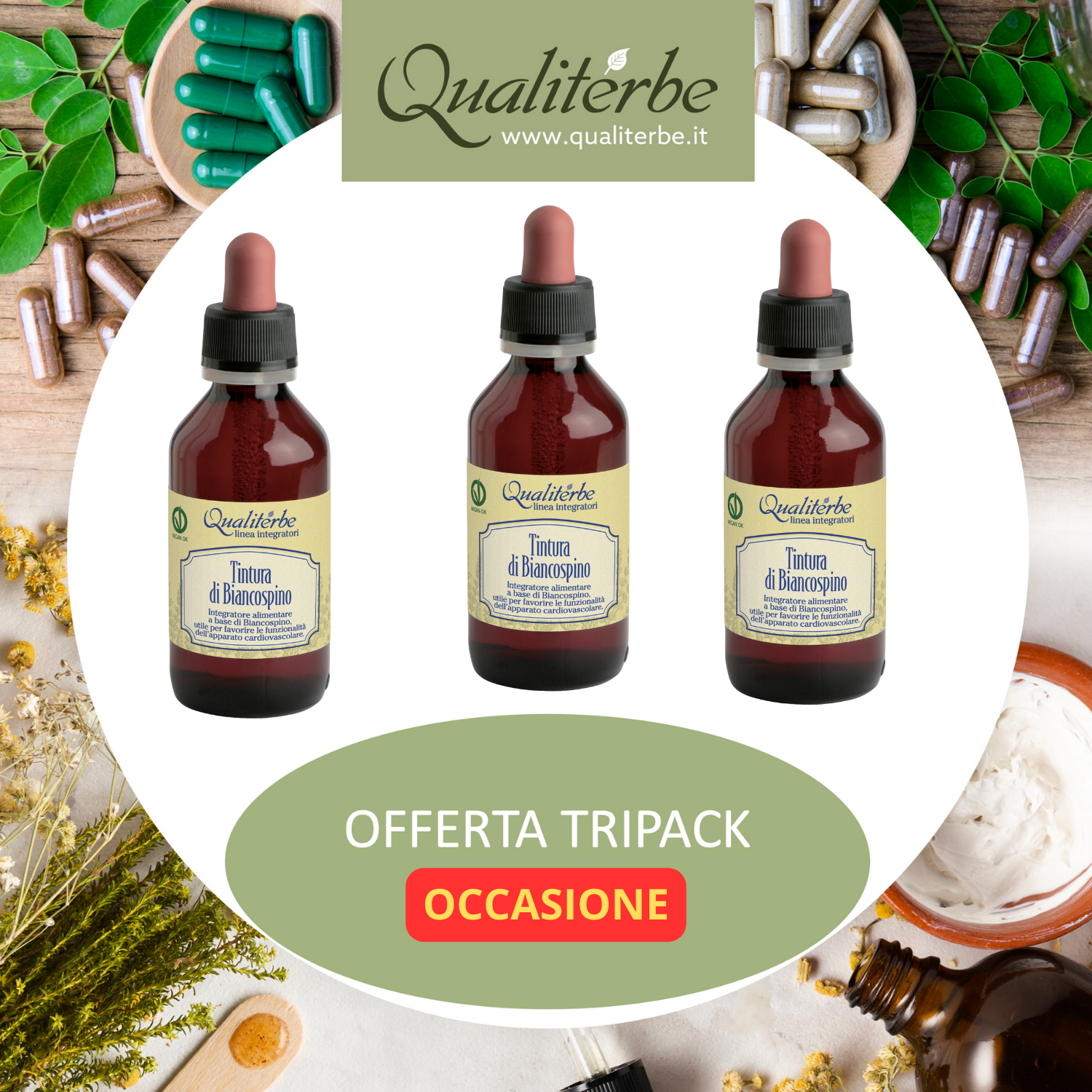 3 flaconI da 100 ml di Biancospino - Integratore in Gocce, Tintura Bio, Senza Conservanti.