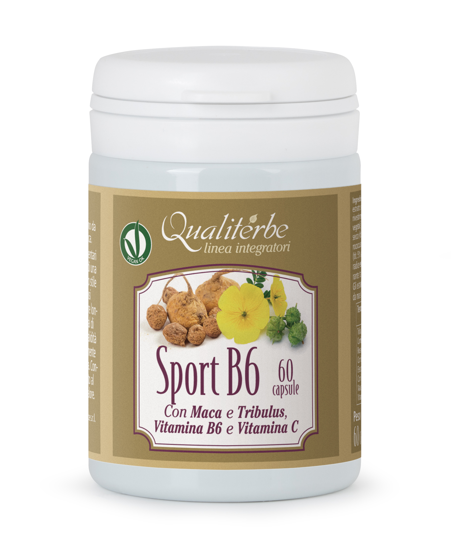 Sport B6 capsule è una miscela energizzante utile per il miglioramento della condizione fisica e atletica, indicata anche in tutti i casi di stanchezza, capace di donare energia e resistenza. L'azione sinergica della vitamina B6 e le piante presenti nel preparato, sono spesso usate per migliorare la forma dagli atleti professionisti, ma possiedono anche un profilo adatto per chi è particolarmente soggetto alla sensazione di stanchezza tipica del cambio di stagione o a chi vuole riapprocciarsi allo sport dopo un periodo più o meno lungo di inattività. Gli estratti vegetali di Tribulus e Maca svolgono differenti ruoli, tra cui un'azione tonica ed energizzante, particolarmente efficace sul tono muscolare e cerebrale, oltre che protettiva del SNC. Questo prodotto risulta assolutamente sicuro, ben tollerato e privo di particolari controindicazioni.